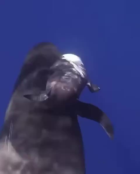 A mother Pilot Whale carries the body of her dead baby. When a mother loses her baby, she carries it in her mouth for weeks, until it decomposes. This mourning process is known as requiem. [📹 Felipe Ravina Olivares]