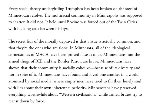 I'll repeat my ask to Democratic Senators here: don't vote for the DHS funding bill, yes. AND ALSO do not vote for another single thing in the United States Senate until the invasion and occupation of Minnesota ends. Don't vote to name a post office, dedicate a road, or even a procedural motion