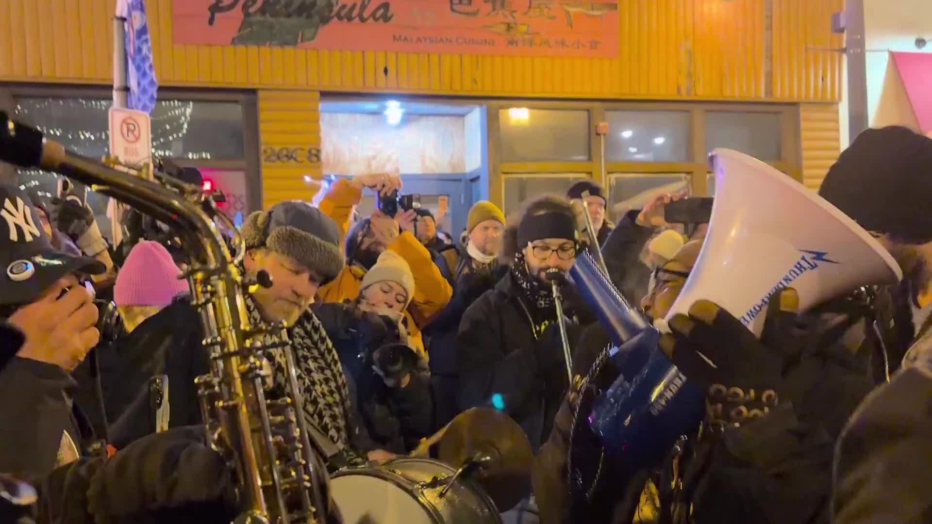 brass solidarity band performing “stand by me” in the streets of whittier next to alex pretti’s memorial. the crowd started chanting “the people united will never be defeated” so they incorporated it into the song. i love minneapolis