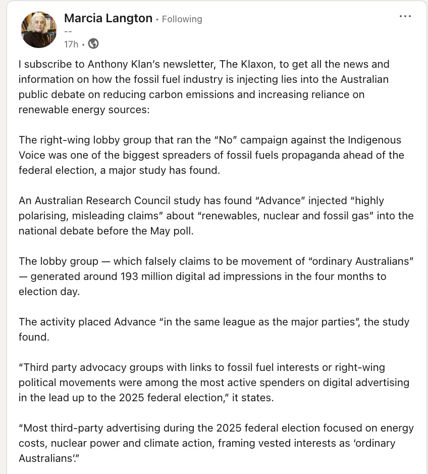 Thanks for the shout-out Marcia Langton.