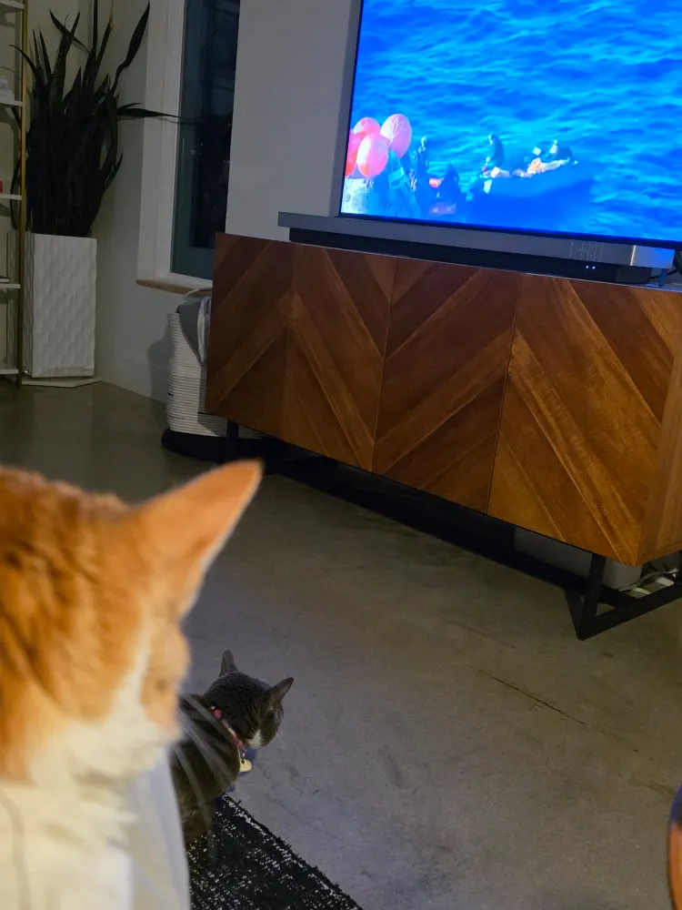 Cat eclipse watching Artemis II recovery.