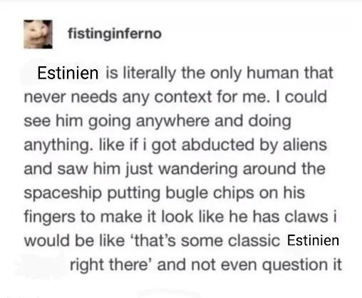 I think it'd be so funny if without any warning, estinien was a boss in the last tier of arcadion. you're wondering where he's been during the patches? just climbing the ranks dude. they thought nidhogg was a feral soul