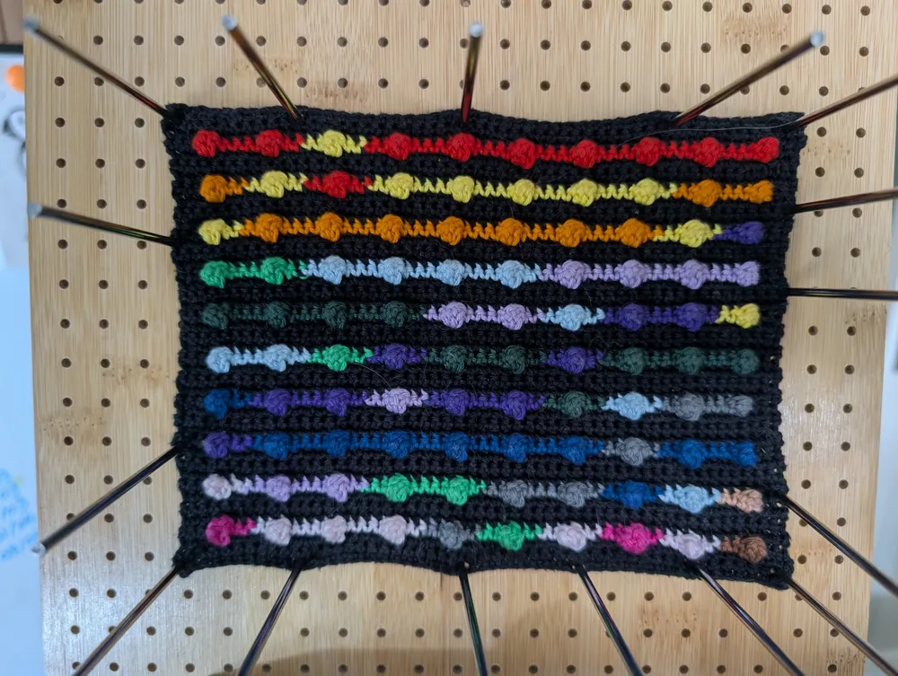 Based on Royal Kennel Club registration data from 2016 to 2025, I give you 10 years of the most popular dog breeds in the UK, a crocheted slope chart.