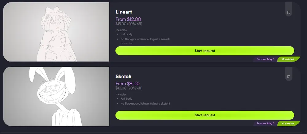 I'm having a Spring sale for the entire month of April! That's right! Commissions are 20% off over on VGEN!