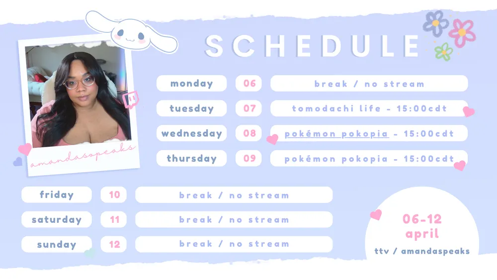 ⋆౨ৎ˚⟡˖ ࣪ this week’s stream schedule ˖⟡˚౨ৎ⋆
