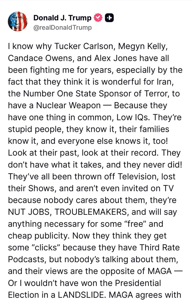 Alex Jones reacts to Trump attacking him, saying Trump is possessed by demonic forces and Melania contradicted him on Epstein with her surprise press statement: “It looks to me like she’s breaking with Trump because she knows the ship is sinking. He’s acting like he’s guilty.”