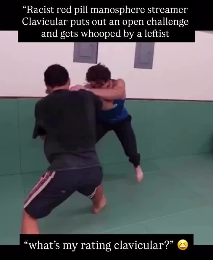 Hey did everyone see Clavicular get his ass beat after he challenged a cancer survivor leftist to a jujitsu match, who said as he was choking him out ‘this is for all the bullshit I gotta watch on my fucking feed’… we need more of this not more podcasts