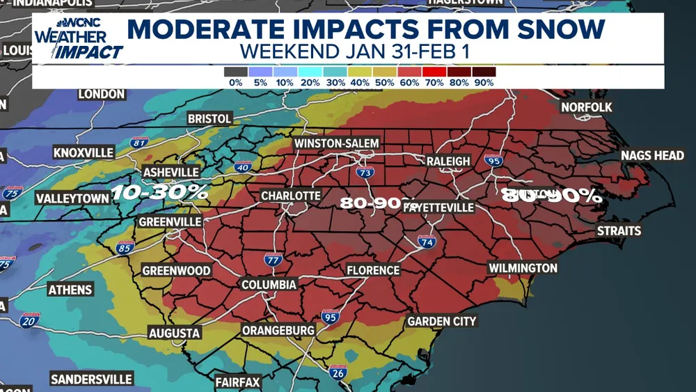 ❄️ Weekend Snow Chances are Increasing! We are tracking a rare all-snow setup for the Carolinas this weekend. It’s still a bit too early to talk specific accumulation numbers, but the signal is getting stronger. #snOMG#cltwx#ncwx#scwx#wcnc