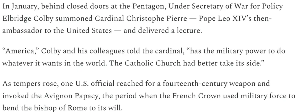 😂 So is the Trump regime proposing to set up an alternative Vatican in DC? Presumably not in Avignon, as that would need France’s cooperation - or will they just not tell the French? 🤔 And the alternative pope would be Pope Donald, or maybe Pope Jay Dee? 🤪