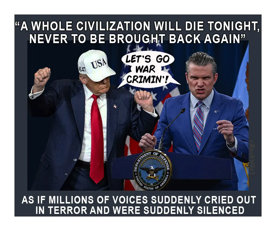 Good morning. If you're just waking up, Trump is openly threatening nuclear war against Iran tonight, and none of the other people in power in the U.S. government appear to be willing to do anything to stop him.