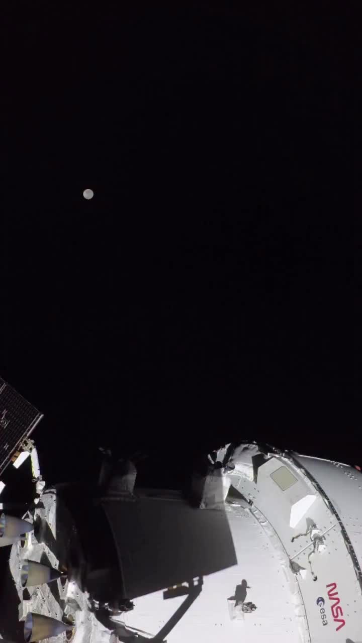 The Moon, in full eclipse, with the #Artemis II Orion spacecraft. Part of the Moon and spacecraft are lit by Earthshine, and both Saturn and Mars are visible to the lower right. Incredible. Details: images.nasa.gov/details/art002e009573