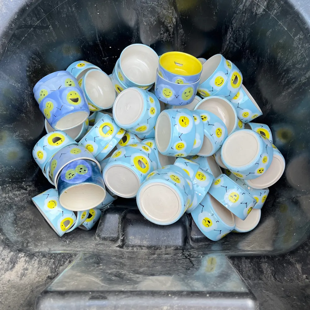 hahaha, I have SO MANY, they were leftover from a big order a couple years ago so there’s a whole other box of them that I use to fill space in my kiln, I’m surrounded by eggs! I’ll send you one if you want an egg separator that didn’t make the retail cut! 🍳🍳