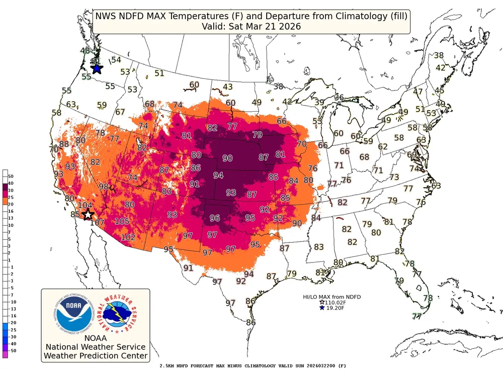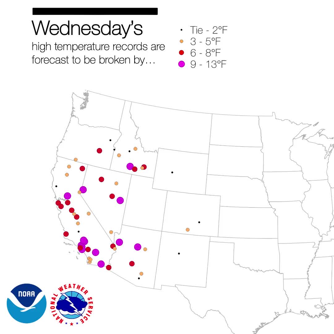This week’s heat from the West Coast to the Plains will set hundreds of daily records—many by several degrees. Some areas may even set March records, with temperatures more typical of June. Learn how to stay safe: weather.gov/heat
