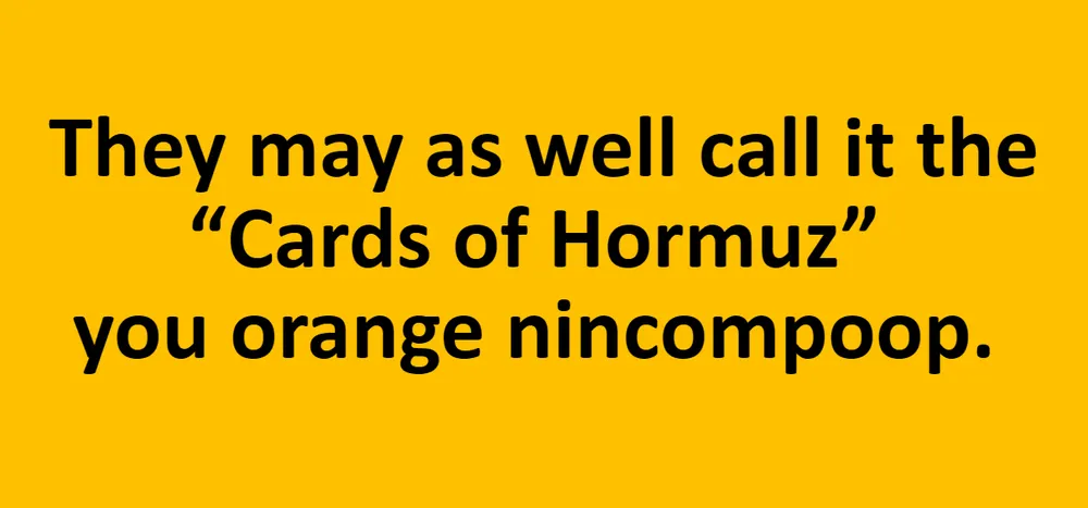 trump out here talking about Iran not having the cards when they are the ones holding a strait.