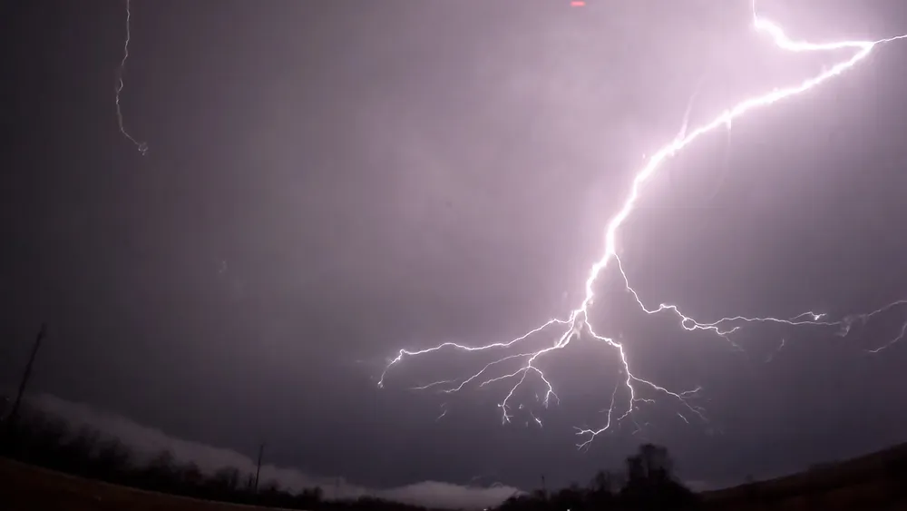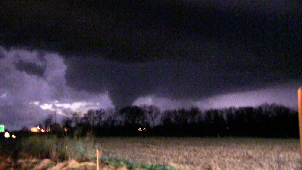 ...Depending on my mood I consider this my first "chase" tornado, although it cannot be confirmed from my footage alone due to ground contact obscured by the tree line (that and due to the darkness I was running my camcorder in its 4 FPS "night vision" mode).