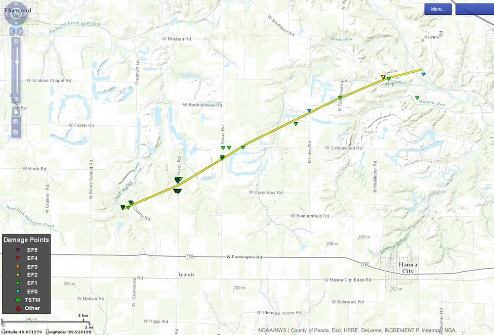 It's the 10th anniversary of a localized tornado outbreak in the Midwest on March 15, 2016. It produced three EF2s including this one which my chase partner and I glimpsed as it tracked just northwest of Hanna City, IL around 7:50 PM.