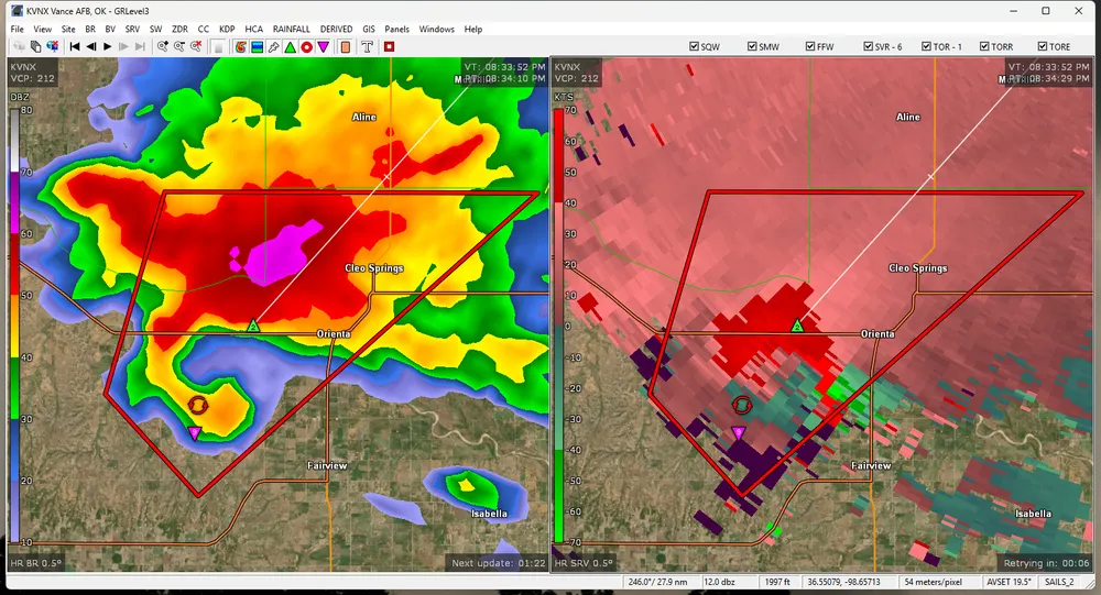 ...we were not really expecting a tornado by that time because our storm appeared to be about to be swallowed by a line. Between that and the darkness, it was a bit of a "brown pants" moment and we hightailed it out of there before we could get a better shot...