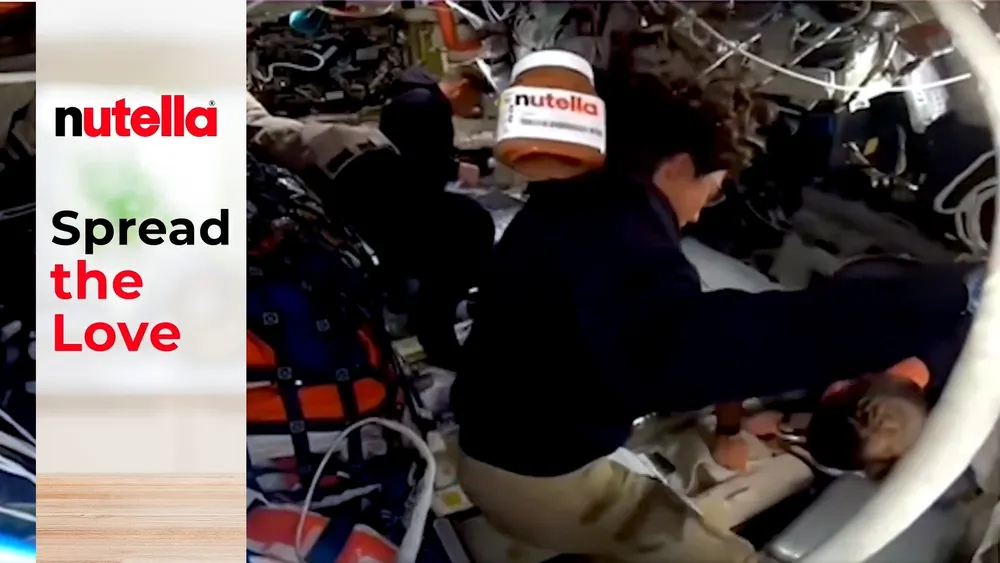 Absolute cinema watching that jar of Nutella escape contain behind the backs of the astronauts after packing other things away