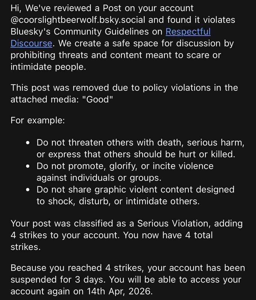 I love that if you post piggy poop balls on Bluesky, it *instantly* gets the rude label. The Bluesky staff have had piggy poop balls posted at them enough to have their AI labeler instantly flag it lmao