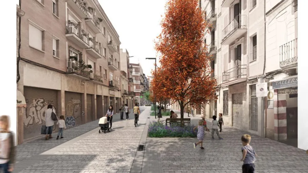 1990's Barcelona pedestrianized street: bollards everywhere!