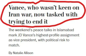There's some beat sweeteners abt how poor JD Vance has to try to clean up Trump's disastrous war.