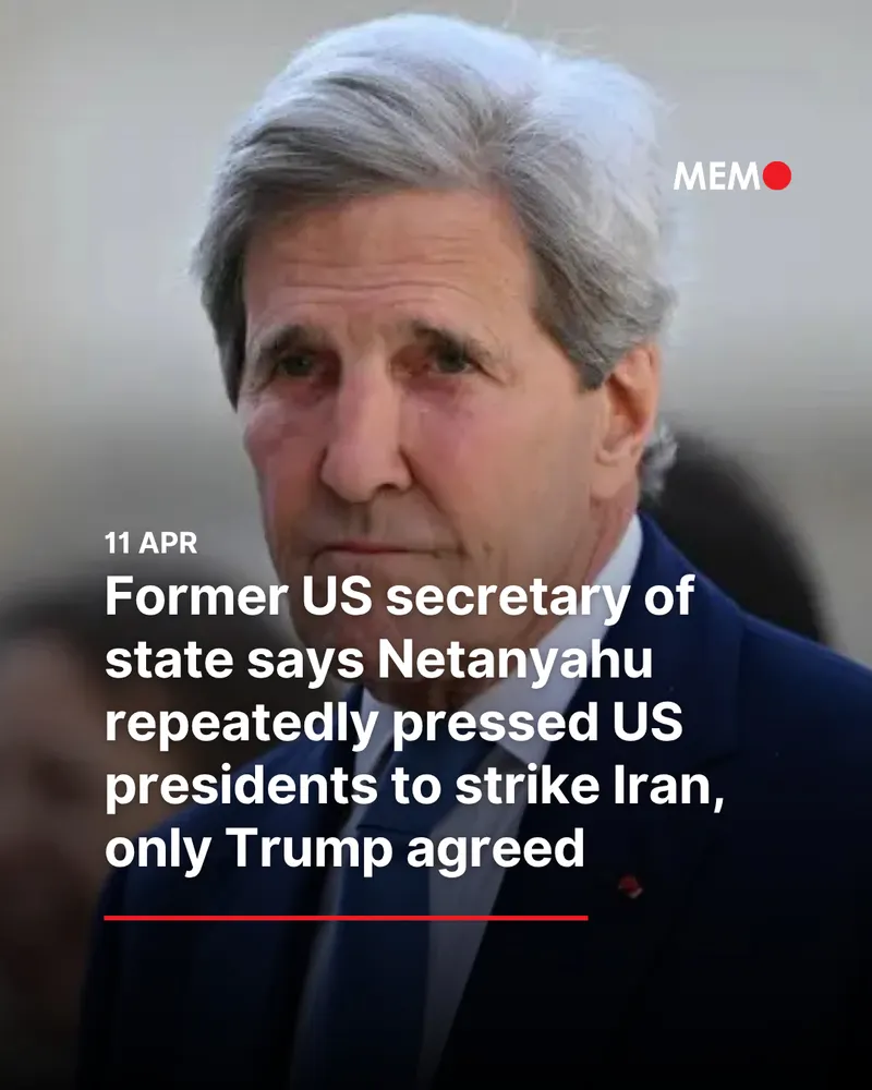 Former US Secretary of State John Kerry said Israeli Prime Minister Benjamin Netanyahu had repeatedly urged US administrations to carry out military strikes on Iran, but previous presidents declined, Anadolu reports.