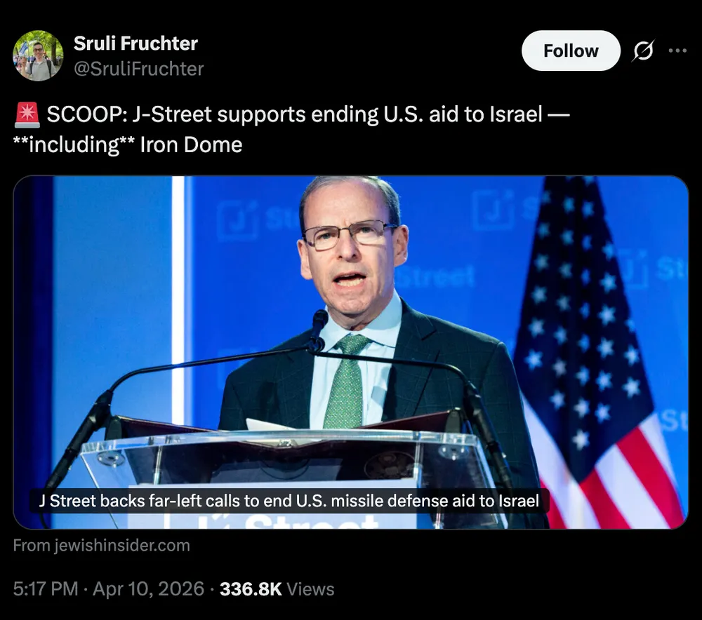 HUGE: J Street now backs blocking all aid to Israel, including for “defensive” weapons like iron dome