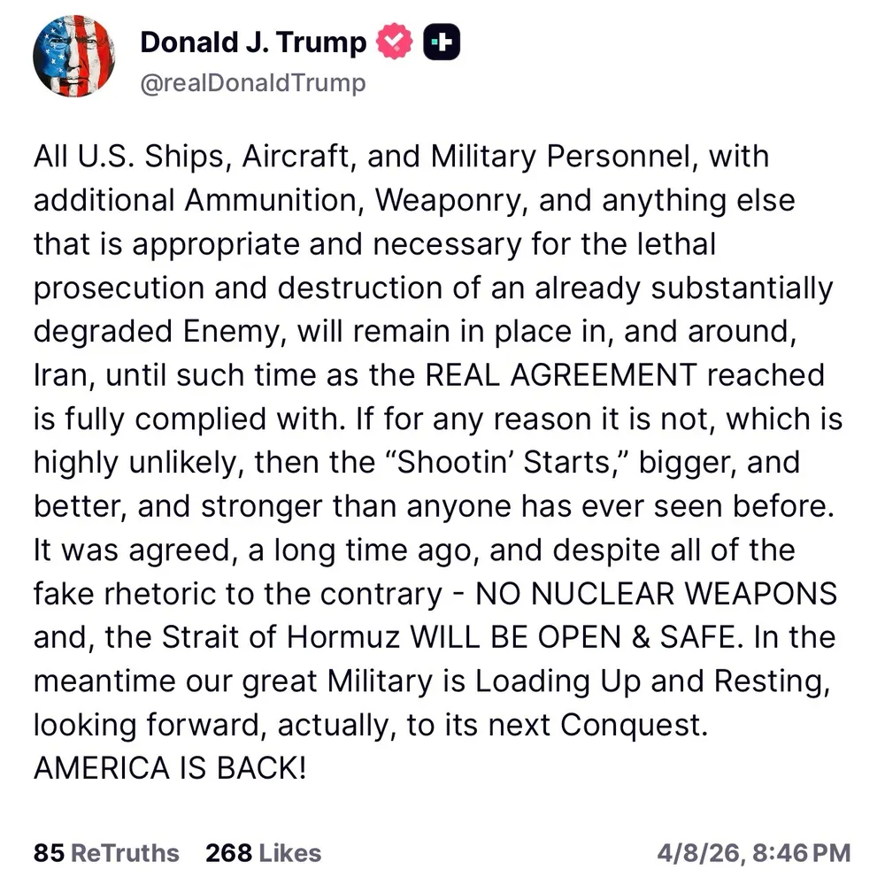 Trump says the U.S. military is โloading upโ around Iran and threatens that if his demands arenโt met, โthe Shootinโ Starts,โ while threatening โour military is looking forward, actually, to its next Conquest.โ