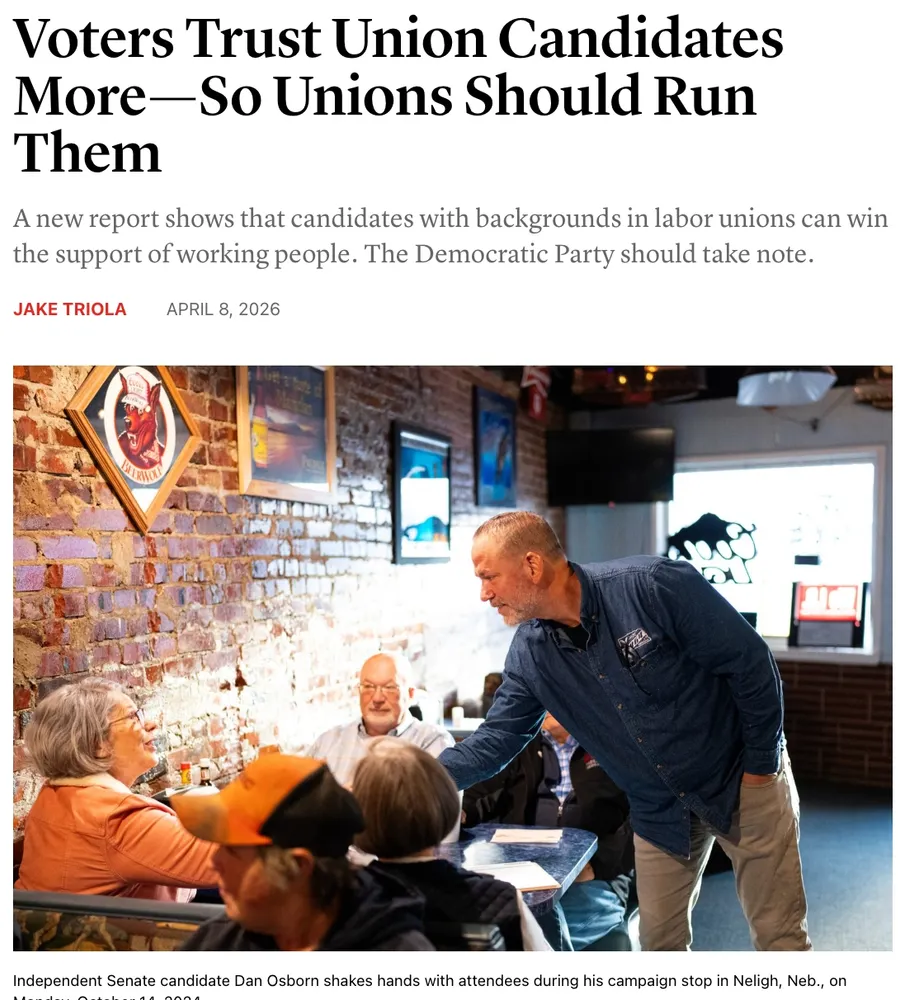 "At a time when trust in all kinds of institutions — political, business, economic — is collapsing, labor unions stand out with a singular kind of public approval that could be leveraged into real electoral influence."