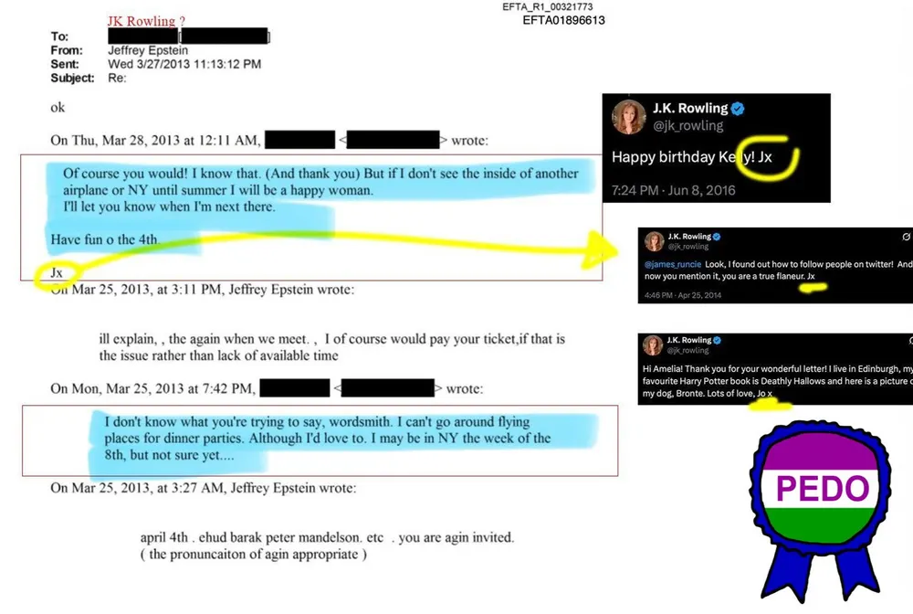 With the new Harry Potter trailer dropping today, now is a better time than ever to remind everyone that J. K. Rowling's name appears in the Epstein files where she calls Epstein "a very dear friend".
