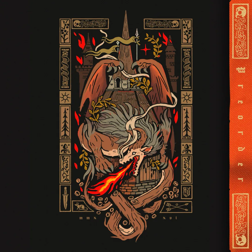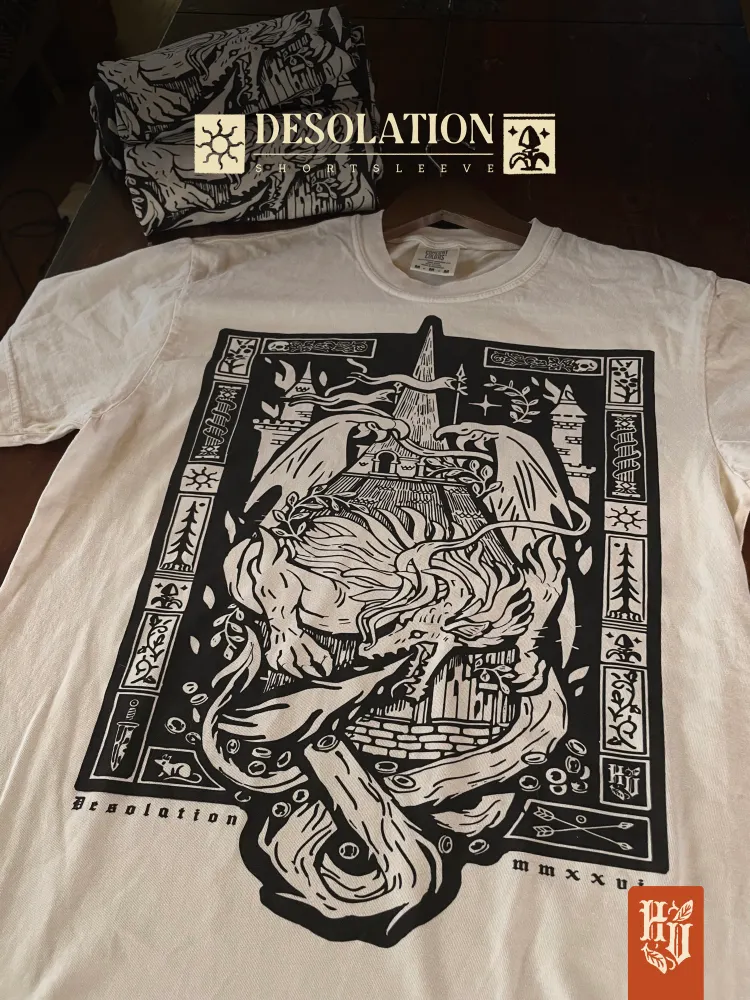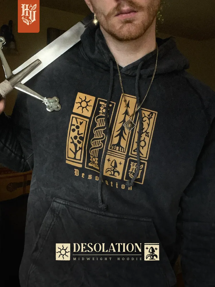 Desolation Midweight Hoodie - Can't help but follow the allure of gold, breathing ruin and flame upon the castles that hold such riches? This hoodie is for you! Link in my bio :>