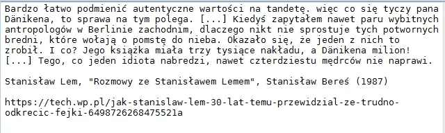 Stanisław Lem, "Rozmowy ze Stanisławem Lemem", Stanisław Bereś (1987)