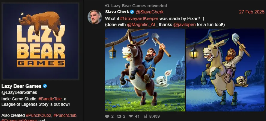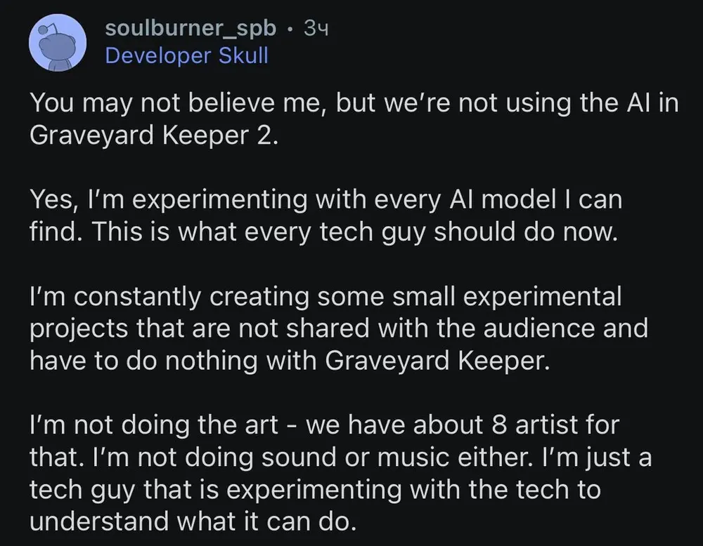 Co-founder of Graveyard Keeper dev Lazy Bear Games regularly posts AI art & asks for help with AI gen code