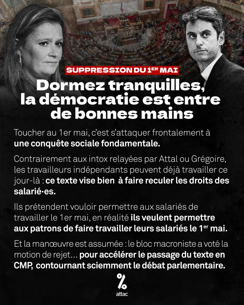 Vue que la secrétaire générale de la CGT ne compte pas le faire, visiblement, j'appelle personnellement à la grève générale sans interruption à partir de Lundi. Et je vous invite à faire de même, tout en l'organisant si vous le pouvez.