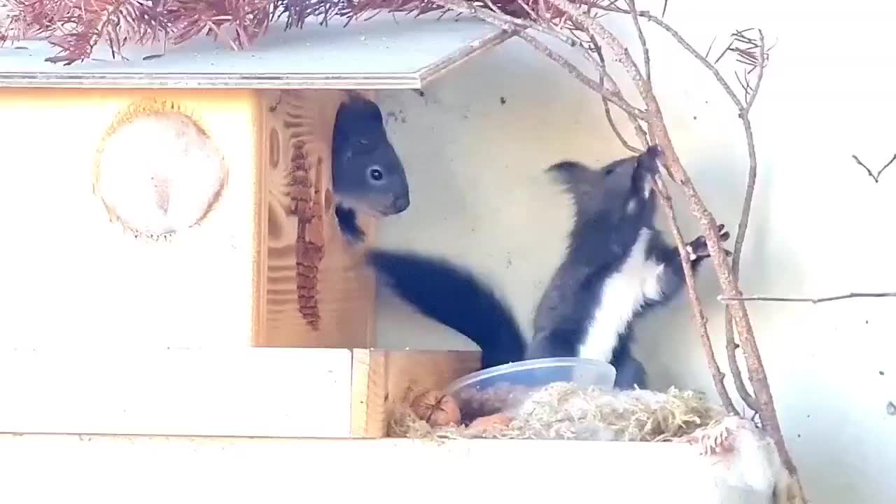Am Ende von Tag 2: der erste Kletterversuch. Der Ast liegt eigentlich nur lose auf und muss wohl demnächst ersetzt werden. #Eichhörnchen#squirrels#babysquirrels 🐿