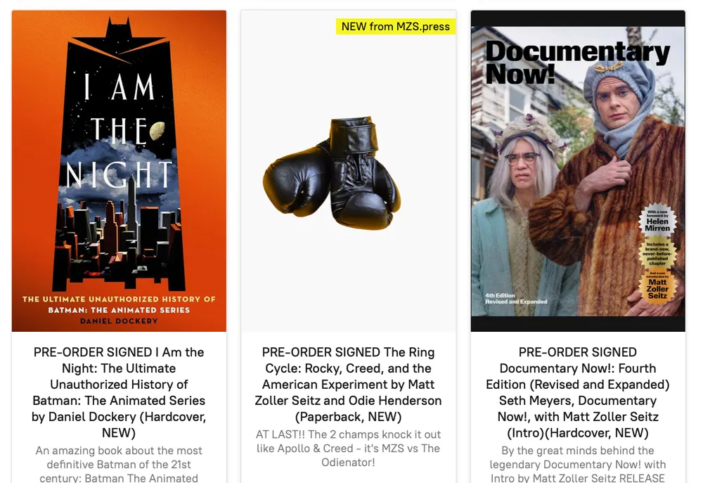Greetings, new friends! You may know me as an author, a prolific Bluesky poster and 4th place finisher on So You Call That Dancing? But you might not know that my partner Judith (@mzpress) and I have an online arts bookstore that's growing every day. Full inventory here: mzs.press/EVERYTHING-Weve-Got-c142371285?sort=addedTimeDesc