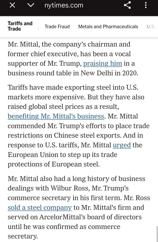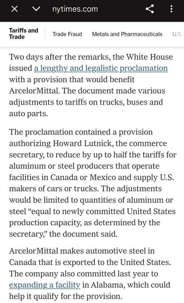 Days later, the WH made adjustments to Trump's tariffs that could benefit ArcelorMittal.