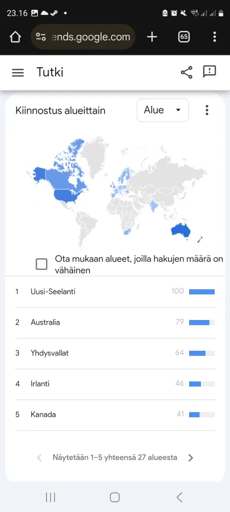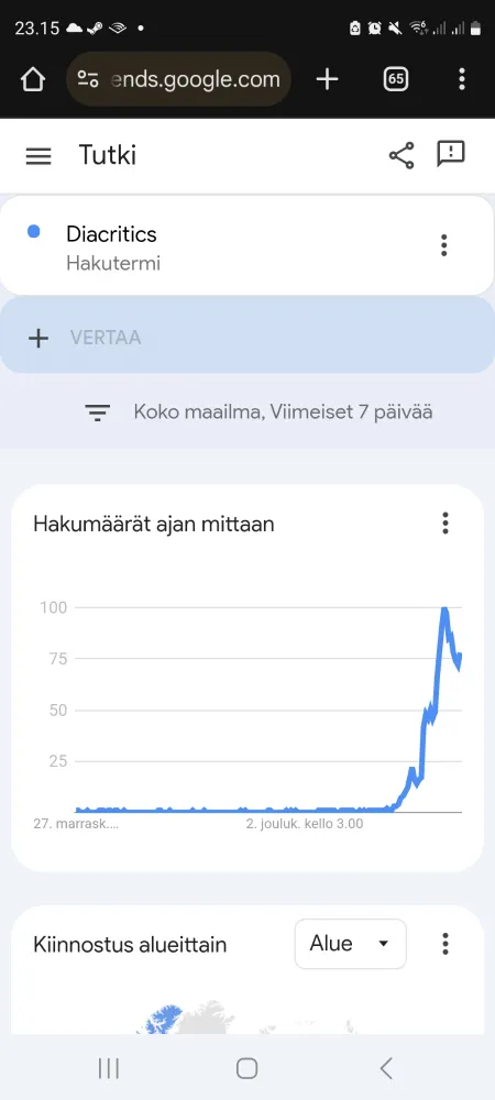 Yesterday's @nytimes.com Strands was particularly tricky for me. I thought it was kind of fun to see the Google search trends act as a map of where people play the game.