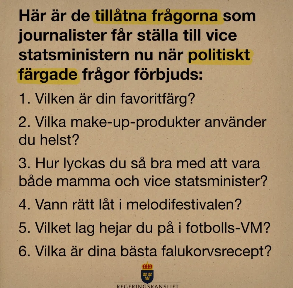 –Rösta på S. Jag vill vara statsminister. Jag vill inte att Kristersson ska vara statsminister. Jag vill inte att Åkesson ska vara statsminister. Jag vill ha mer krav på invandrare. Jag vill inte ha ministrar som inte är S. Jag behåller högerpolitiken, men är bättre på att administrera. Rösta S!