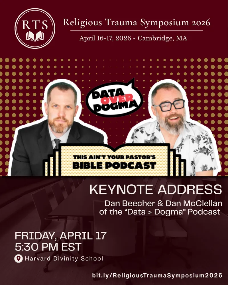 If you’re in or around the Boston area on Friday, April 17, my Data Over Dogma cohost Dan Beecher & I will be giving the keynote address for the Religious Trauma Symposium at Harvard Divinity School. Event starts at 5:30 PM ET!
