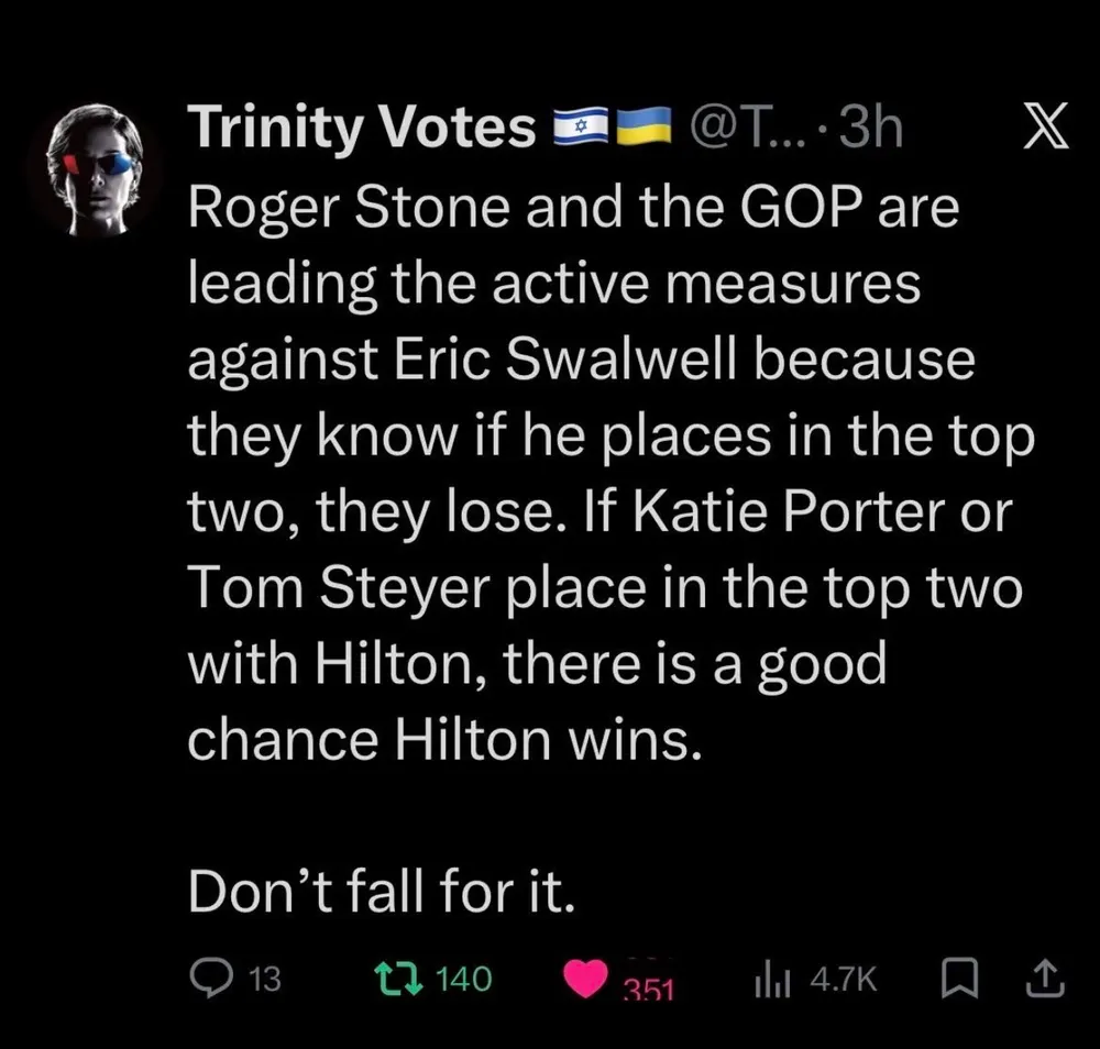 Meanwhile, Eric Swalwell’s campaign is in turmoil with top allies resigning amid serious allegations. 👇