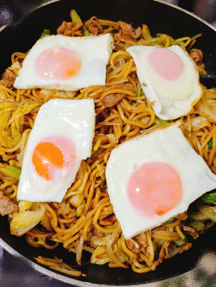 4人前デカフライパンで目玉焼きキレイでき😍🍳