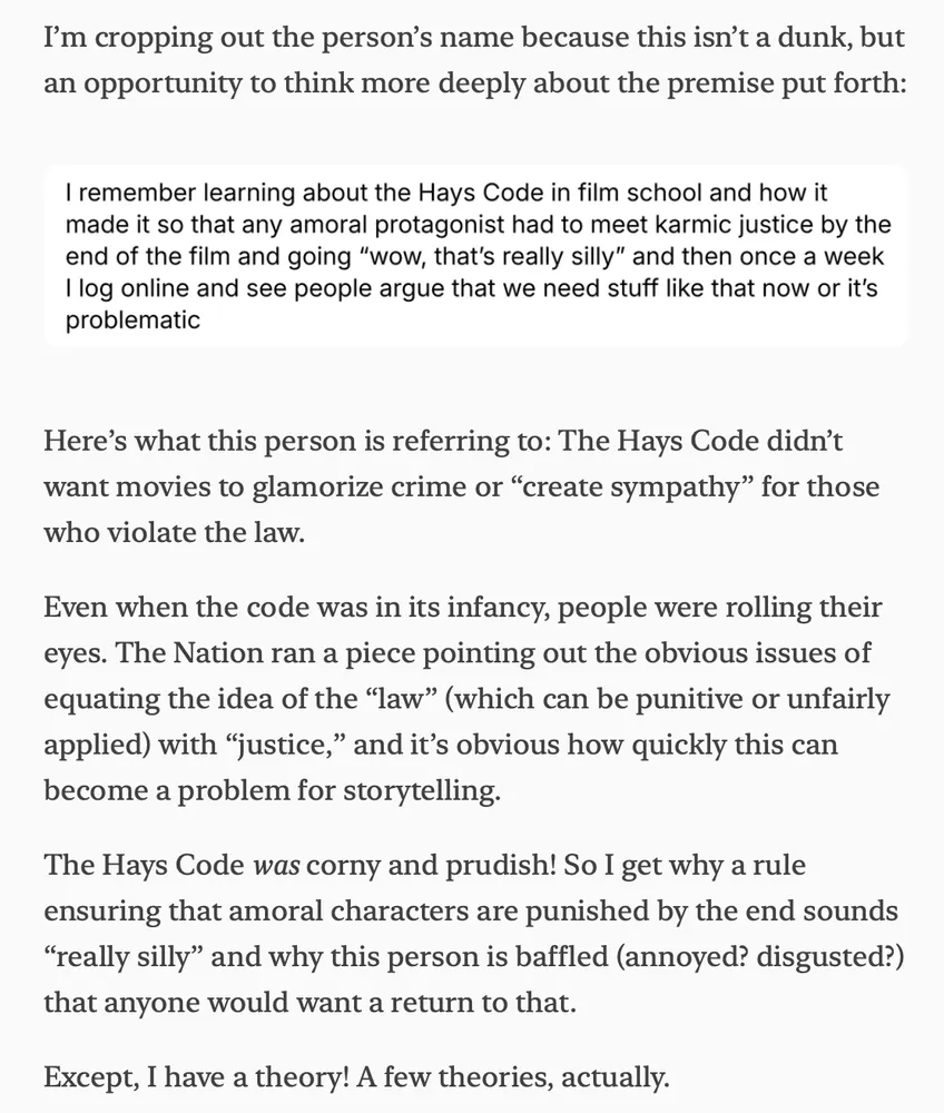 Audiences might be unintentionally pining for the days of the Hays Code, or maybe they're responding to something else.