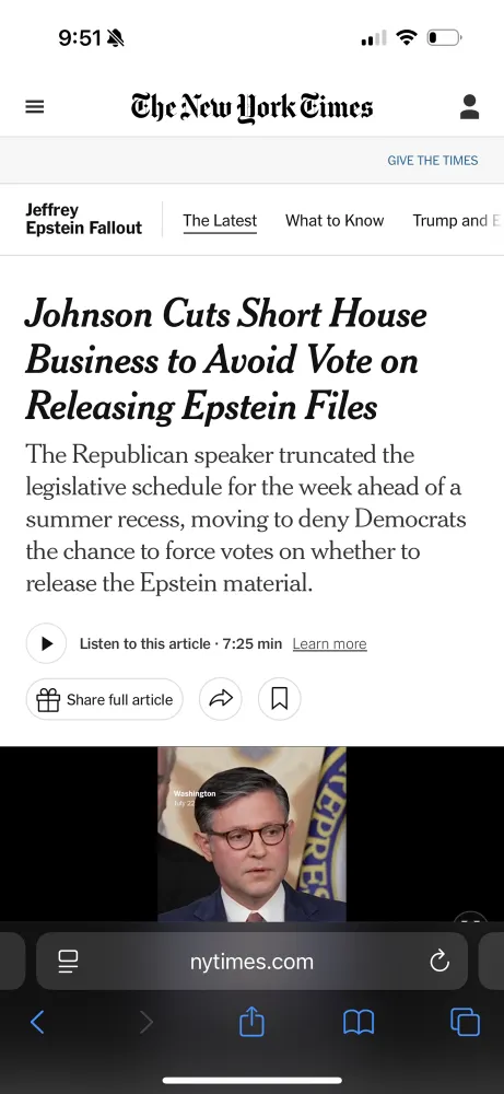 Johnson shuts door on House vote before September on releasing Epstein files