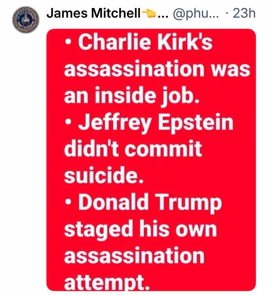 Not sure about Charlie Kirk, but Epstein was murdered and Trump's assassination attempt was faked. Let's remember that people died, and Trump was complicit. He's a rapist AND a murderer.