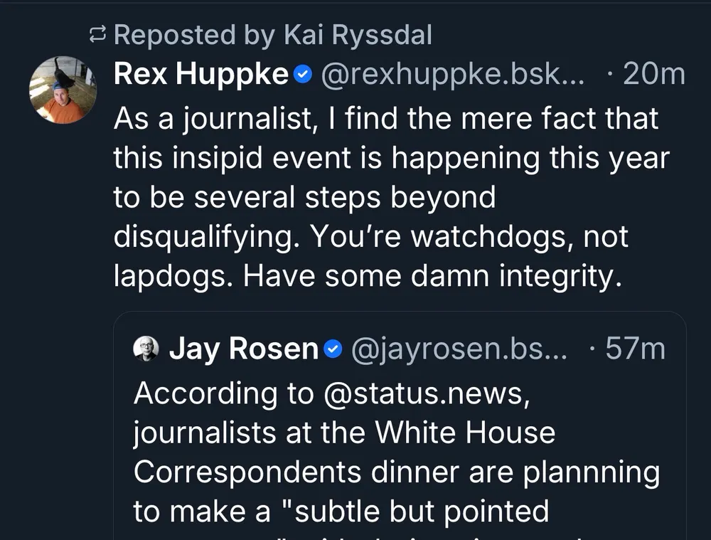 As a journalist, I find the mere fact that this insipid event is happening this year to be several steps beyond disqualifying. You’re watchdogs, not lapdogs. Have some damn integrity.