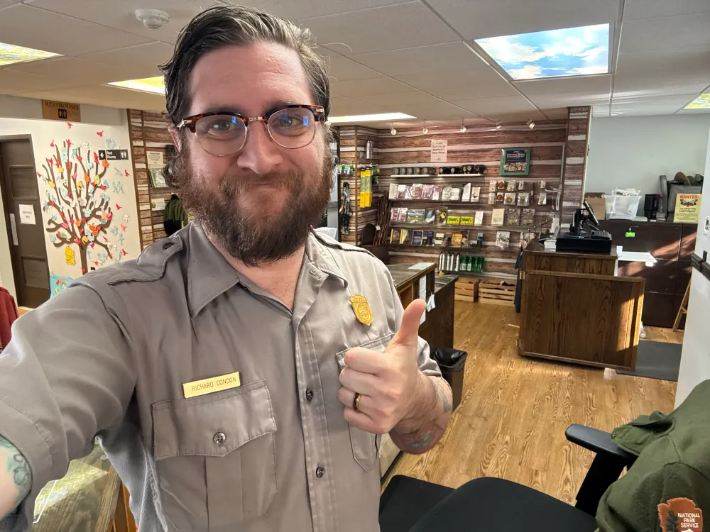 Me, the only ranger on duty in the visitor center at an understaffed park in an agency that lost 25% of its already dwindling workforce in the last year: