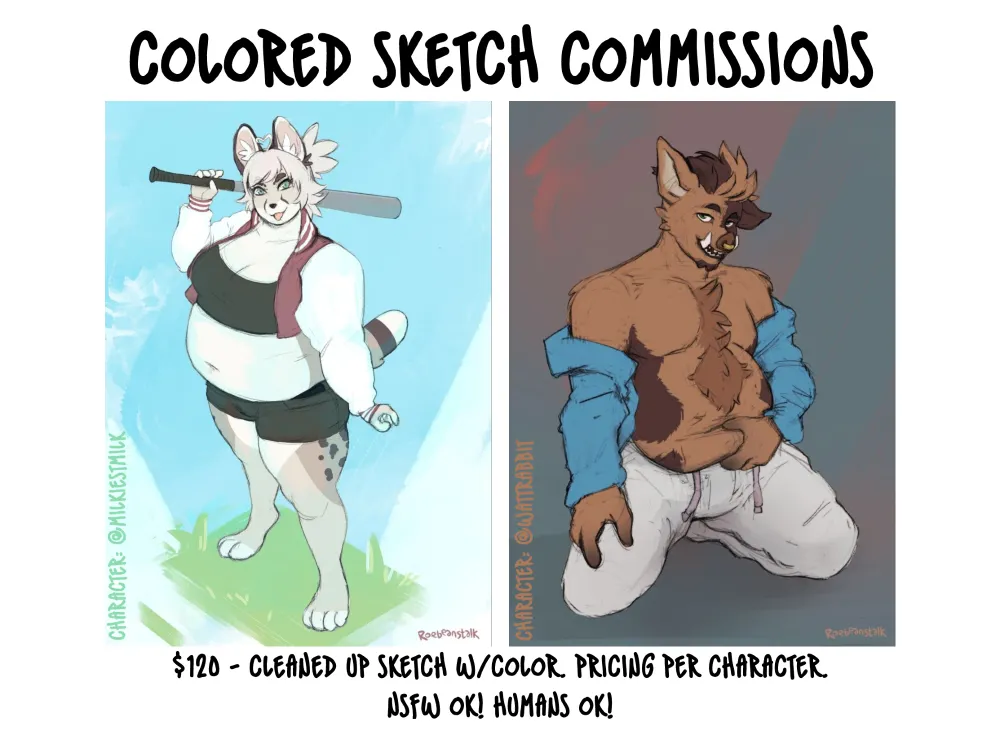 howdy! i am open for a few colored sketch commissions! nsfw is OK, and humans too~ if you'd like one, you can fill out the form to grab a slot here! forms.gle/RsPAh2xVdZWrqpeTA