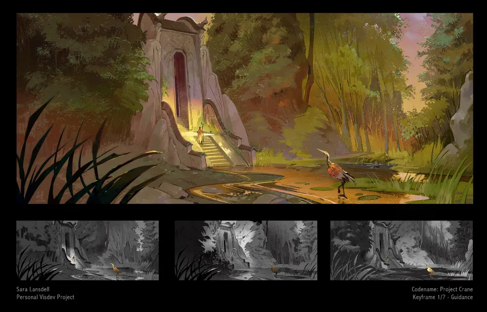 It's #PortfolioDay again! I’m Sara, concept & visdev artist who loves designing environments, color & light, props, and more! Willing to relocate for the right role (animation or games), open for 2026 work!