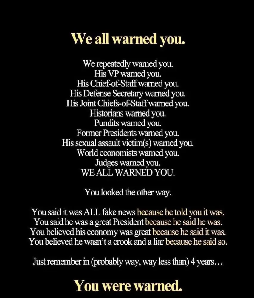 Why? I mean you are yelling into the black hole. You have been warned for years by dozens of our top military personnel in the country. Many that worked with trump on a daily basis.